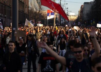 Decenas de miles de estudiantes y ciudadanos volvieron a este viernes a salir a las calles de Belgrado y otras...