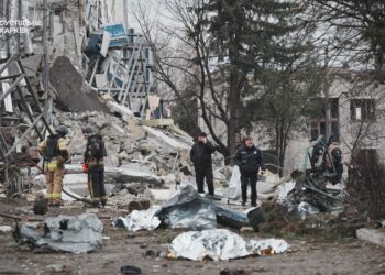 Un ataque ruso con un misil balístico contra el centro de la ciudad ucraniana de Izium, en la región nororiental...