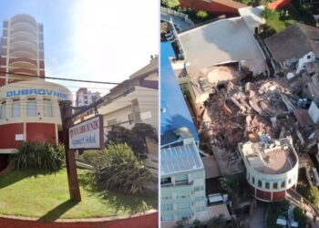 El edificio de diez pisos que albergaba un aparthotel en la localidad costera argentina de Villa Gesell y que se...