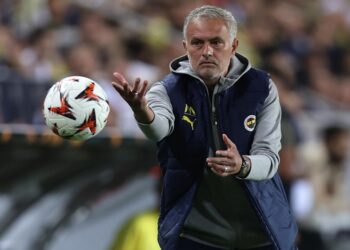 José Mourinho, entrenador del Fenerbahçe turco, recibió una tarjeta amarilla por reproducir ante una cámara de televisión con su ordenador...
