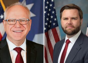 Los aspirantes a la Vicepresidencia de Estados Unidos, el gobernador demócrata de Minesota, Tim Walz, y el senador republicano de...