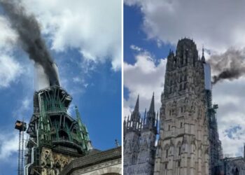 Un incendio afecta a la flecha de la catedral gótica de la ciudad francesa de Ruán (Normandía), donde se están...