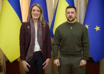 El presidente ucraniano, Volodímir Zelenski, y la presidenta del Parlamento Europeo, Roberta Metsola, reivindicaron hoy en Kiev la unidad europea...