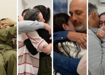 Las cuatro jóvenes rehenes liberadas este sábado por el grupo terrorista Hamás cruzaron a territorio israelí para reunirse con sus...
