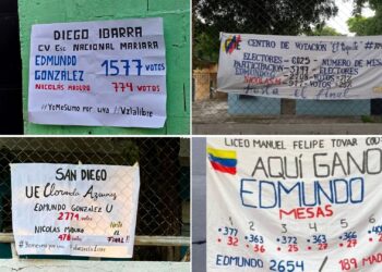 Decenas de escuelas del estado Carabobo, que funcionan como centros de votación, amanecieron este sábado con pancartas en las que...