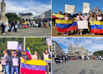 Medio centenar de venezolanos se concentraron este sábado en Bruselas para pedir el reconocimiento del opositor Edmundo González Urrutia como...