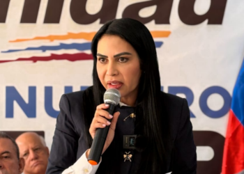 La dirigente política Delsa Solórzano, presidenta del partido Encuentro Ciudadano, intervino durante la presentación de la hoja de ruta de...