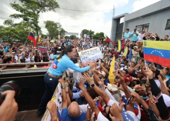 La líder opositora María Corina Machado encabezó este sábado la «caravana de la libertad» en Maturín, estado Monagas, donde envió...