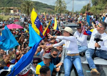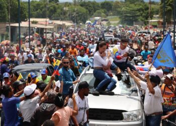 Miles de persononas salieron este jueves a las calles de Upata para recibir a la líder opositora María Corina Machado,...