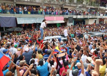 La líder opositora María Corina Machado fue recibida este miércoles por cientos de habitantes de la localidad de Monay, en...