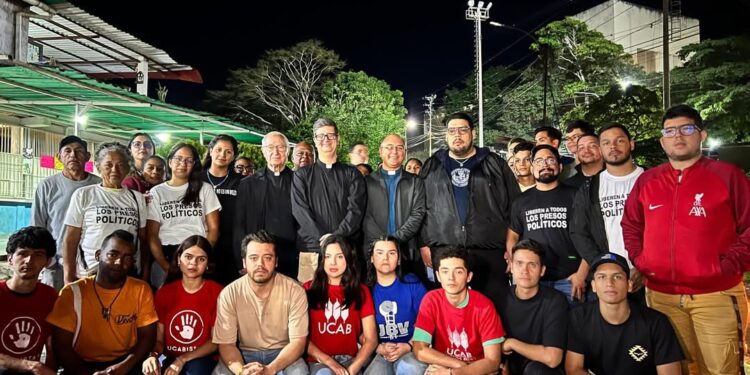 La noche del miércoles 21 de enero, el sacerdote jesuita Luis Ugalde y el rector de la Universidad Católica Andrés Bello (UCAB), Arturo Peraza, acompañaron la vigilia que mantienen desde hace 14 días familiares de los presos políticos en las puertas de la cárcel de El Rodeo I, en el estado Miranda.