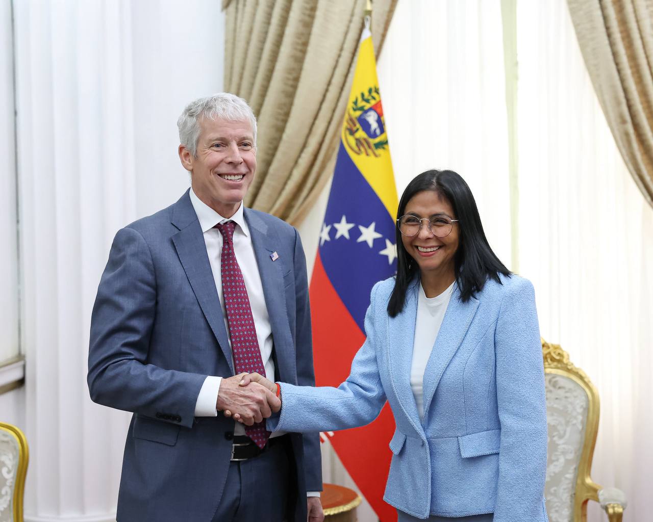 El @Energy @SecretaryWright y yo visitamos el Palacio de Miraflores, en Caracas, donde sostuvimos conversaciones con las autoridades interinas para avanzar en el plan de tres fases de la Administración Trump: estabilización, recuperación y reconciliación, y transición. – LFD pic.twitter.com/6T7gaBgbV0