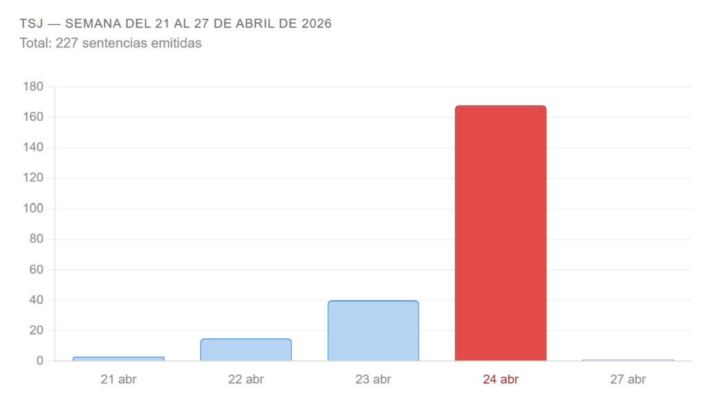 El Tribunal Supremo de Justicia (TSJ) emitió 227 sentencias entre el 21 y el 27 de abril de 2026, en una semana marcada por el inicio del proceso para designar nuevos magistrados por parte de la Asamblea Nacional.