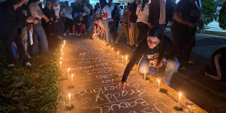 Los familiares encendieron velas y escribieron en el suelo los nombres de los presos políticos en esta noche de vigilia y oración por sus seres queridos.