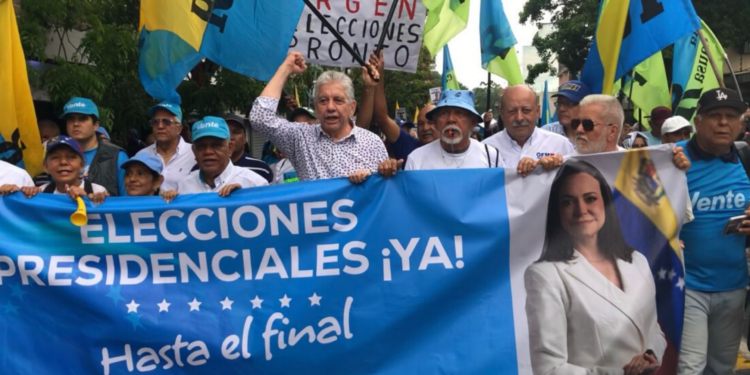 Militantes y simpatizantes de La Causa R, Vente Venezuela y la Organización Fuerza y Movimiento (OFM) marcharon este sábado 25 de abril por el centro de Barquisimeto bajo la consigna «Elecciones presidenciales ya y libertad para los presos políticos», en una movilización que partió desde la avenida Vargas con avenida 20 hasta la calle 42 de la capital larense.