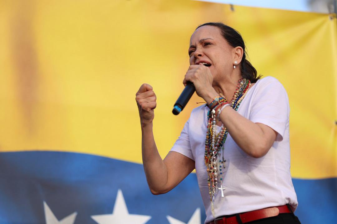 La líder venezolana y Premio Nobel de la Paz, María Corina Machado, convocó este sábado a los venezolanos levantar la voz por los presos políticos, el desmontaje de la estructura represiva y la celebración de elecciones limpias y libres, y anunció que regresará pronto a Venezuela junto al presidente electo Edmundo González Urrutia.