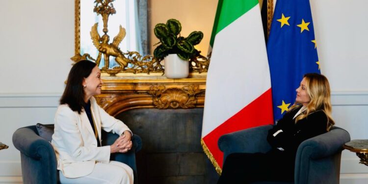 La líder venezolana y Premio Nobel de la Paz, María Corina Machado, se reunió este jueves con la primera ministra de Italia, Giorgia Meloni, en el Palazzo Chigi, sede del gobierno italiano en Roma, en una nueva escala de su gira europea.