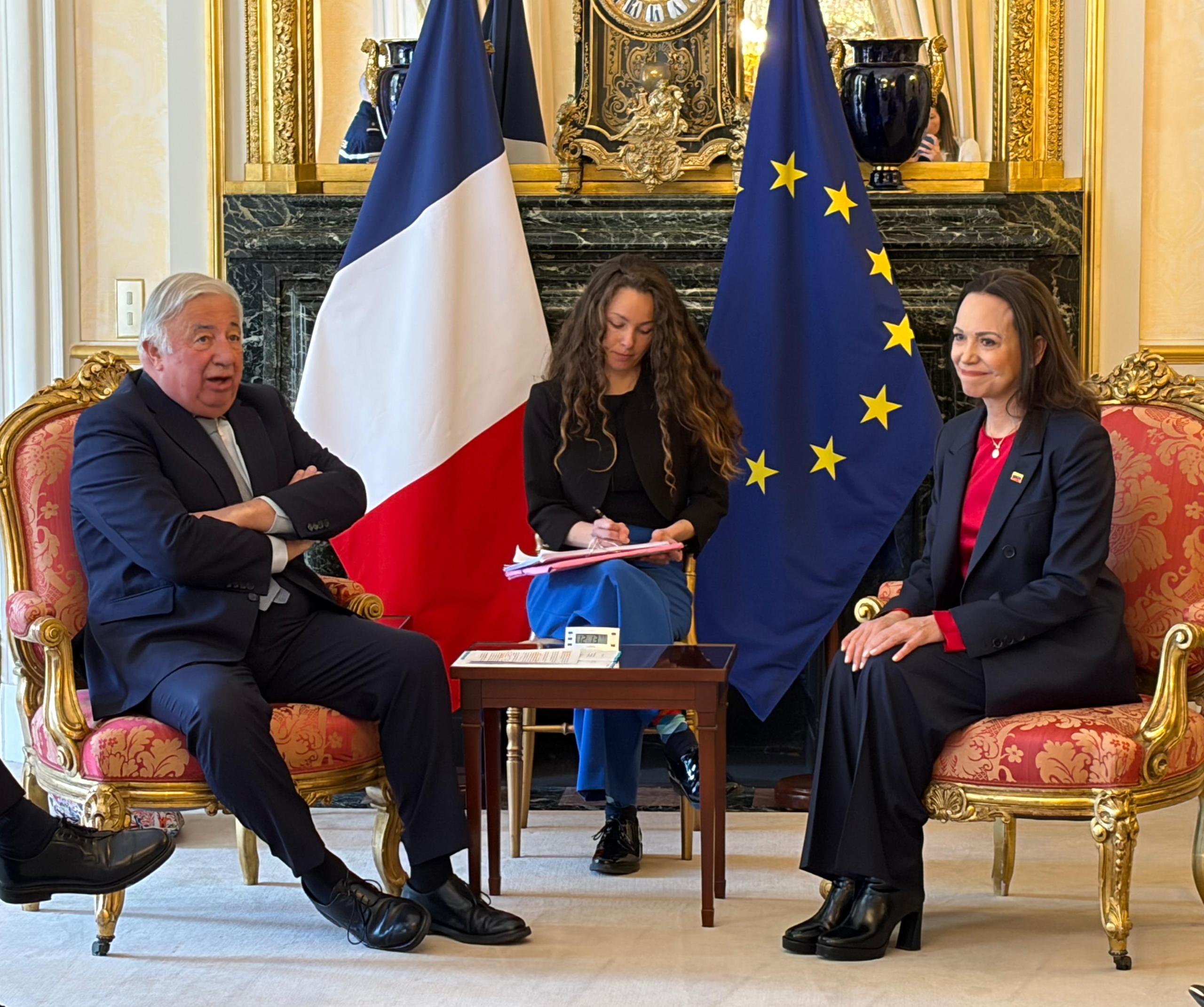 En su segundo día de agenda en París, la líder venezolana y Premio Nobel de la Paz, María Corina Machado, visitó el Senado de Francia, donde se reunió con su presidente, Gérard Larcher, para abordar la transición democrática en Venezuela y la necesidad de establecer un calendario electoral antes de que finalice el año.