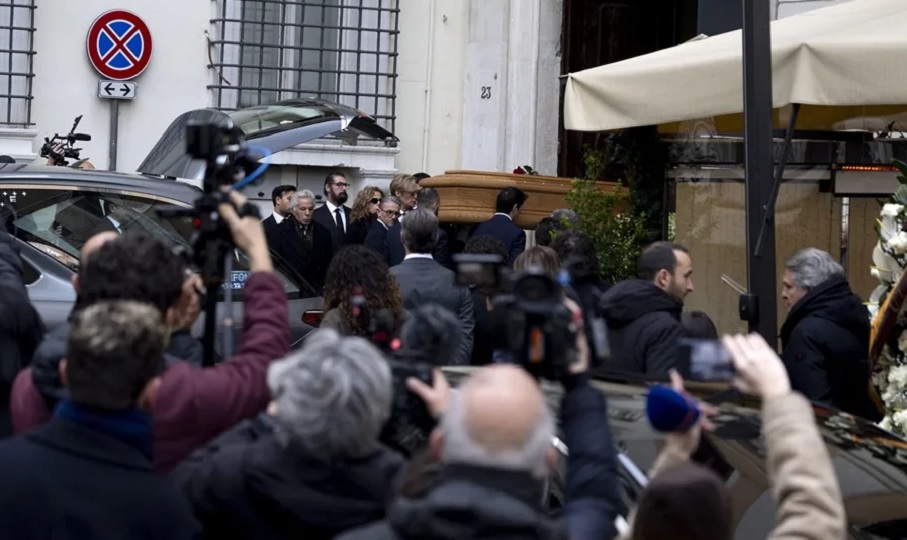 A la entrada se colocaron cojines de flores blancas y dos coronas de rosas enviadas por el Ayuntamiento de Roma y el Teatro de la Ópera, para el que realizó algunas de sus últimas creaciones: el vestuario para una espectacular ‘La Traviata» de 2016 dirigida por Sofia Coppola.