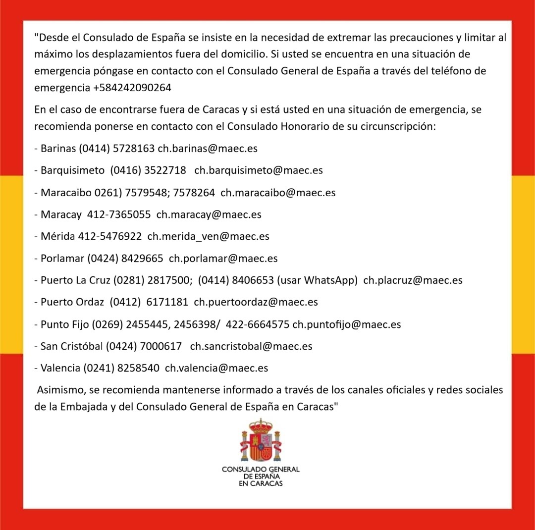 También publicaron los números telefónicos para atención de los connacionales españoles: