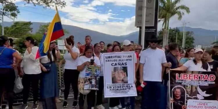 Familiares de más de 22 ciudadanos colombianos rehenes en Venezuela protestaron este martes en el Puente Internacional Simón Bolívar para exigir su liberación.