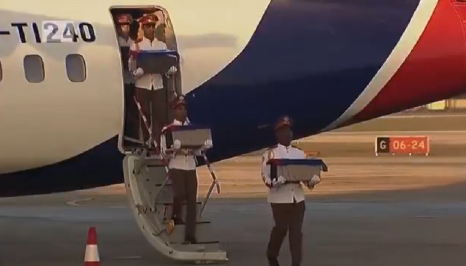 Los cuerpos llegaron en avión sobre las 7 de la mañana al aeropuerto internacional José Martí de la capital, donde les esperaban el presidente cubano, Miguel Díaz-Canel, su predecesor, Raúl Castro, y varios ministros y autoridades del país.