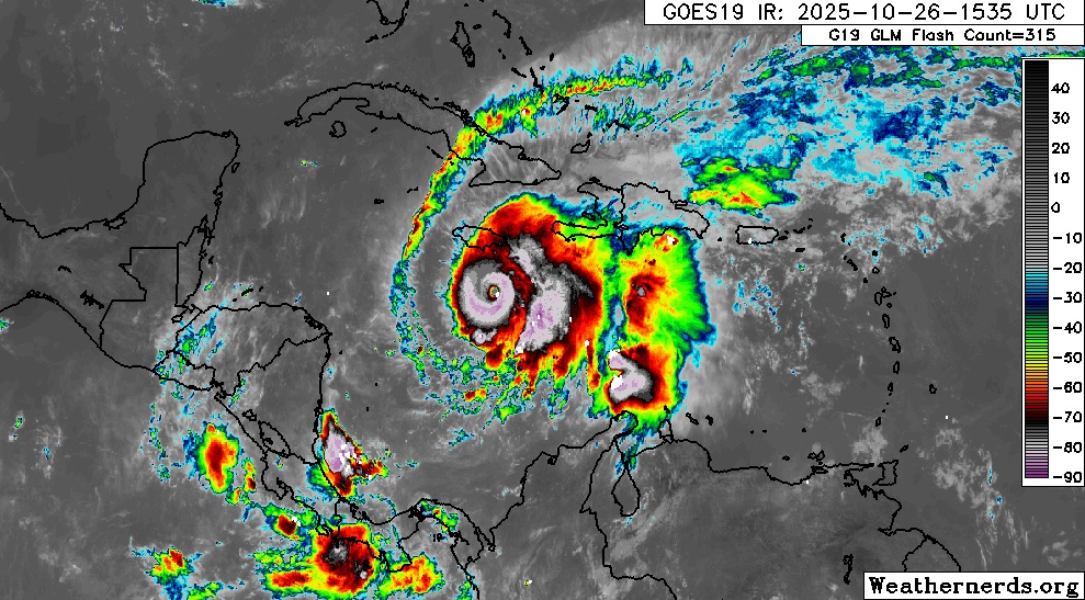 Según el último parte del Centro Nacional de Huracanes (NHC), con sede en Miami (EE.UU.), Melissa continúa su movimiento por el Caribe como potente huracán de categoría 4, con vientos sostenidos de 220 kilómetros por hora, ráfagas superiores y vientos huracanados que se extienden hasta 35 kilómetros desde el centro.