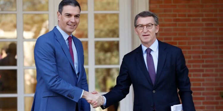 Portada » Pedro Sánchez y Alberto Núñez Feijóo se reunén, aunque sin expectativas de rebajar la tensa relación