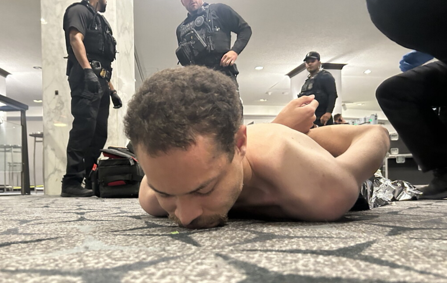 De hecho el propio Trump compartió en su red social Truth Social imágenes del hombre arrestado, entre ellas, una fotografía en la que se le ve esposado en el suelo del hotel.