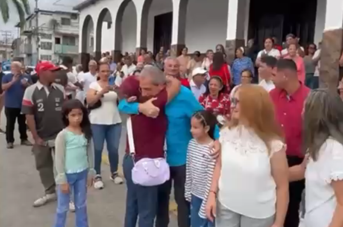 El dirigente político Biagio Pilieri regresó este domingo a su natal Chivacoa, donde fue recibido por decenas de personas que se congregaron para darle la bienvenida tras casi 17 meses de detención arbitraria. Su llegada estuvo marcada por muestras de afecto, aplausos y abrazos de vecinos, feligreses y seguidores que lo esperaban a las puertas del templo local.