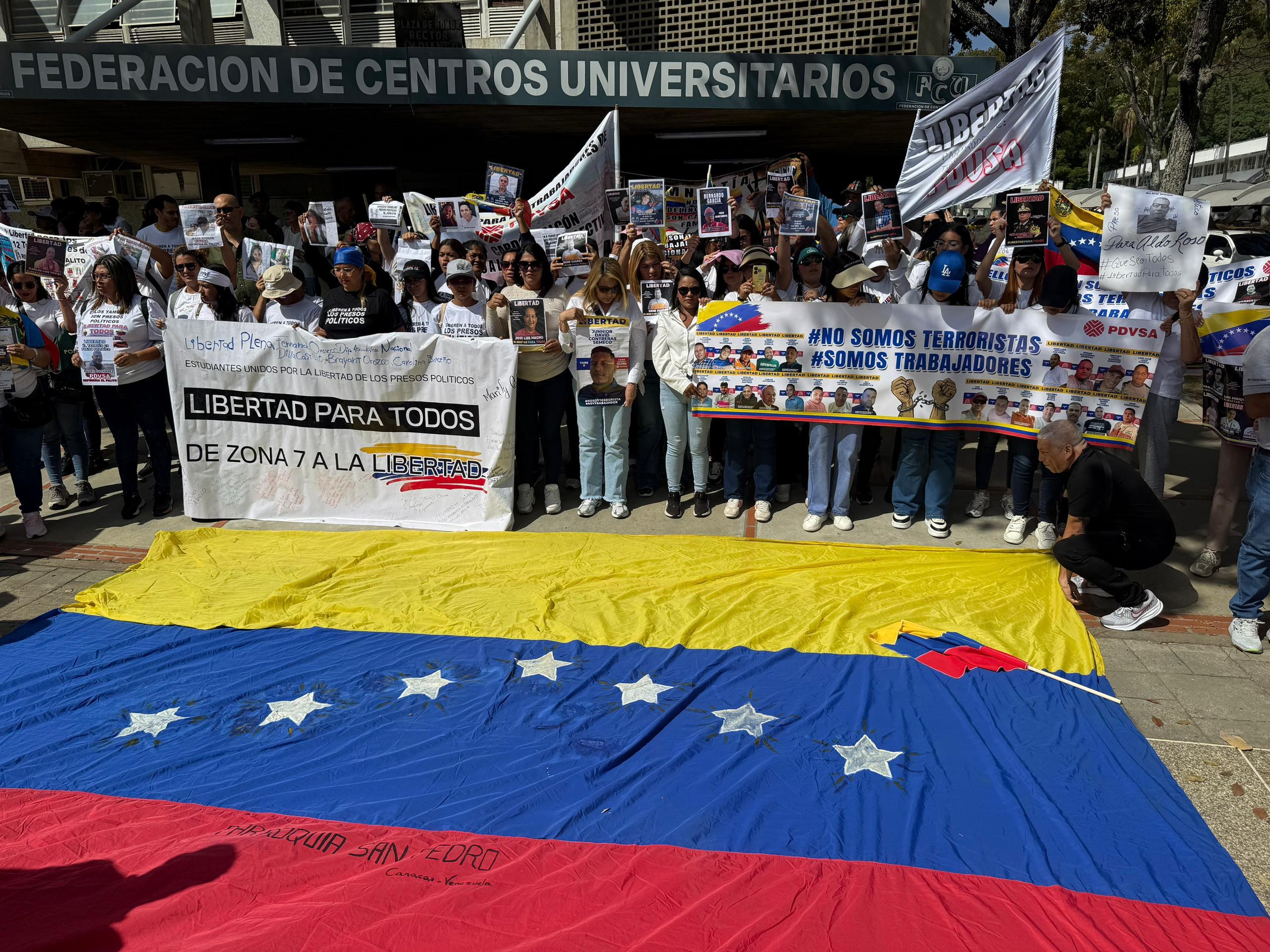 La vicepresidenta de la FCU-UCV, Rosa Cucunuba, afirmó que en este momento «aún tenemos presos políticos y familiares en las afueras de los centros de reclusión, sufriendo y esperando para abrazarse. Esto se tiene que acabar. No podemos permitir que este sistema siga destruyendo a nuestro país».