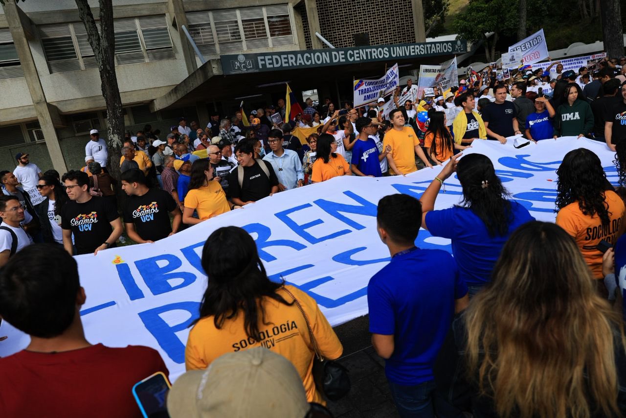 Cientos de ciudadanos se concentran en la UCV para exigir la liberación de todos los presos políticos