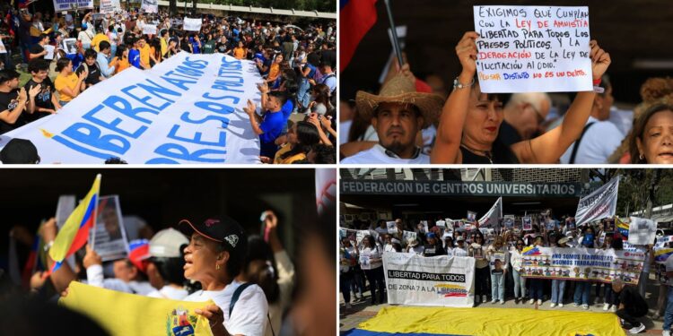 Además de los estudiantes, también se encuentran familiares de los presos políticos, así como trabajadores y sociedad civil, que se unen a la exigencia de libertad total y no a cuenta gotas, a pesar del anuncio realizado por el presidente de la Asamblea Nacional chavista, Jorge Rodríguez.