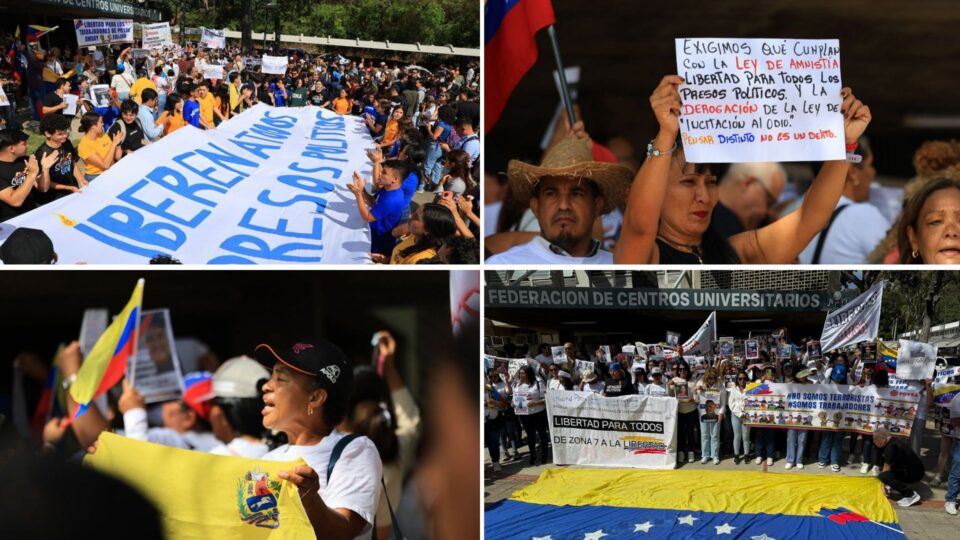 Este martes el movimiento estudiantil de la Universidad Central de Venezuela (UCV) convocó a una concentración para exigir al régimen chavista una Ley de Amnistía total con transparencia en los procesos judiciales y garantías de no repetición para todos los presos políticos del país.