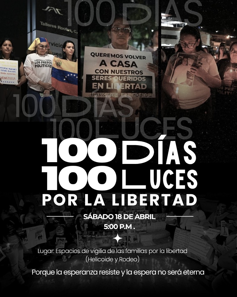 «Han pasado 100 días desde que se anunció la libertad de presos políticos en Venezuela. 100 días en los que la promesa no se ha cumplido. 100 días en los que se ha mantenido la mentira y la indiferencia institucional. 100 días en los que continúan las torturas”, expresaron en la convocatoria, en la que también subrayan que han sido “100 días de presencia diaria y permanente frente a las cárceles, en vigilia”.