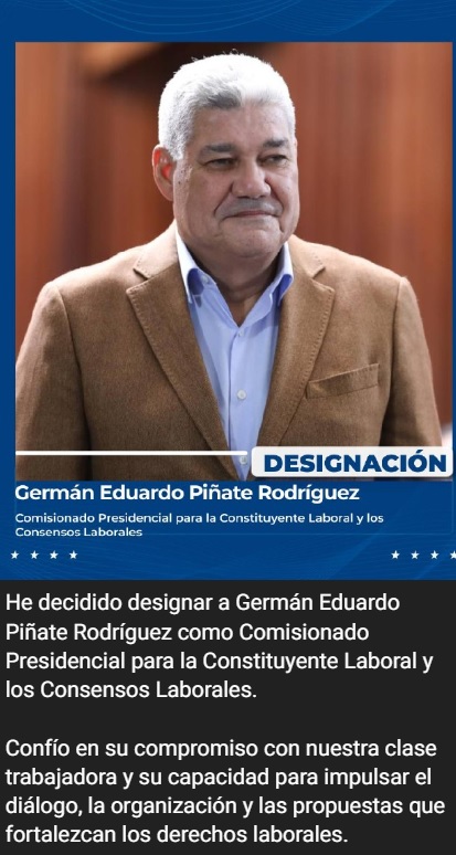 ` Delcy Rodríguez designa a Eduardo Piñate como Comisionado para la Constituyente Laboral - Monitoreamos