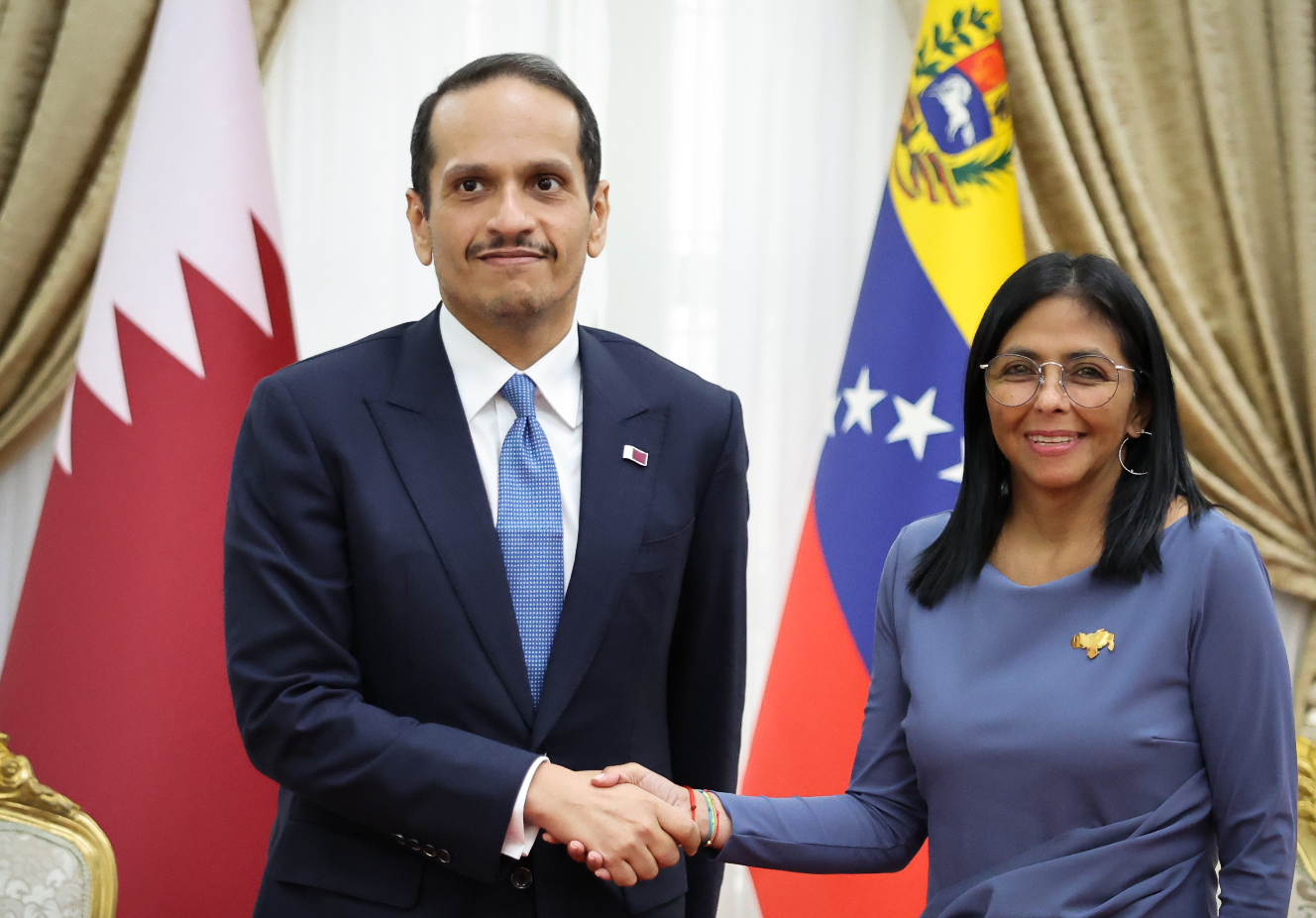 ` Delcy Rodríguez recibió en el palacio de Miraflores al primer ministro de Catar - Monitoreamos
