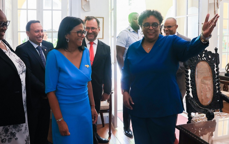 Delcy Rodríguez se reúne con la primera ministra de Barbados, Mia Mottley