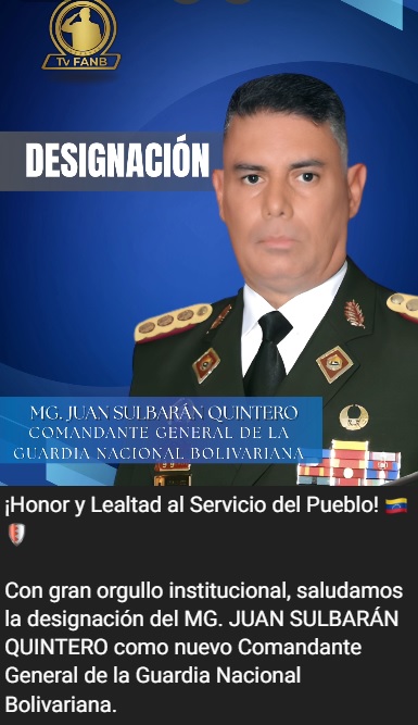 Este jueves la encargada del régimen chavista, Delcy Rodríguez, anunció la destitución del mayor general Elio Ramón Estrada Paredes como Comandante general de la Guardia Nacional Bolivariana (GNB) y designó en el cargo al mayor general Juan Sulbarán Quintero.