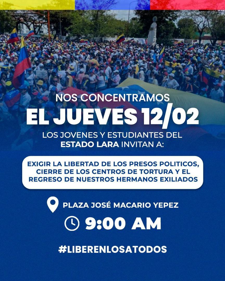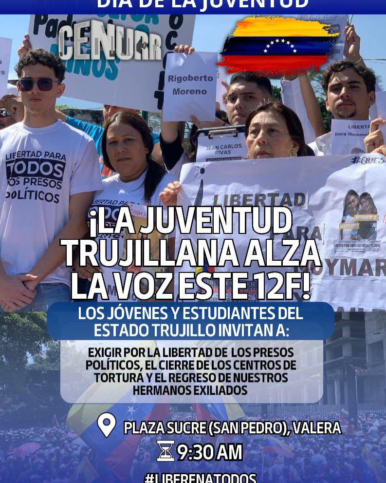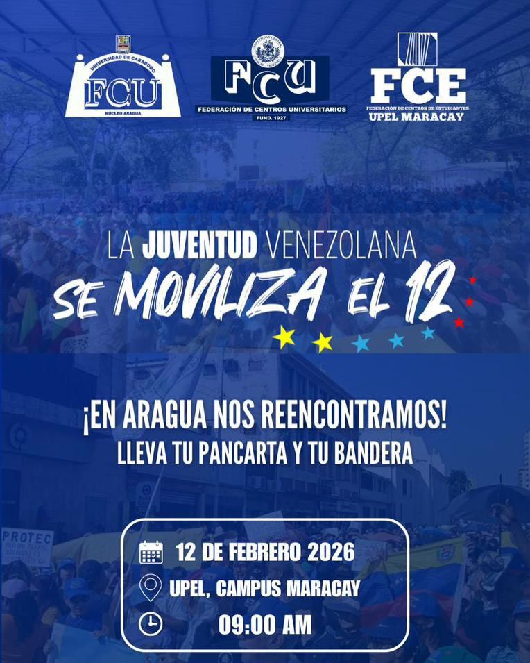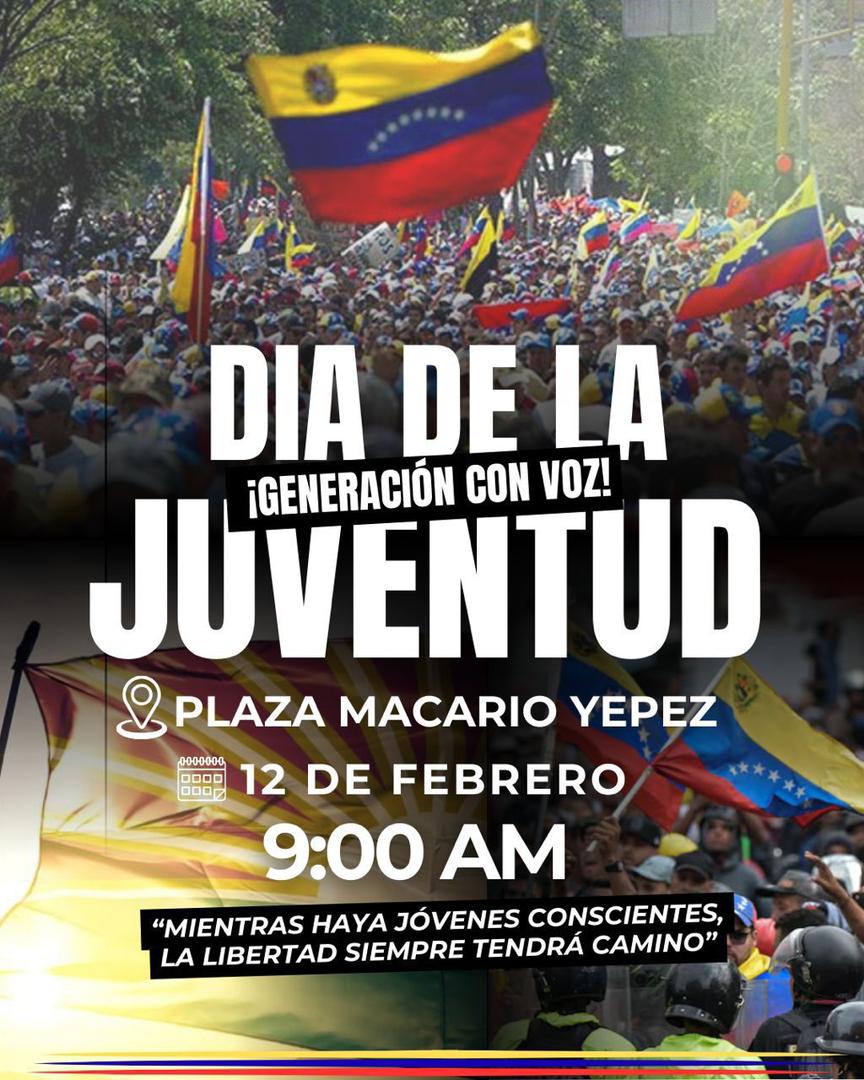 Para este 12 de febrero, cuando se celebra el Día de la Juventud en Venezuela, el movimiento estudiantil realizan movilizaciones en todo el país, por la libertad de todos los presos políticos y la democracia en el país.