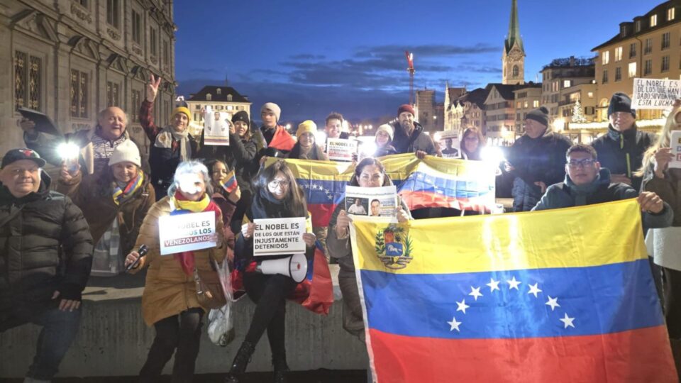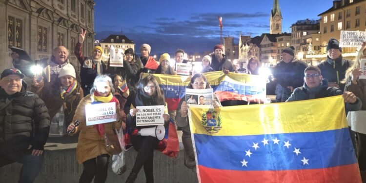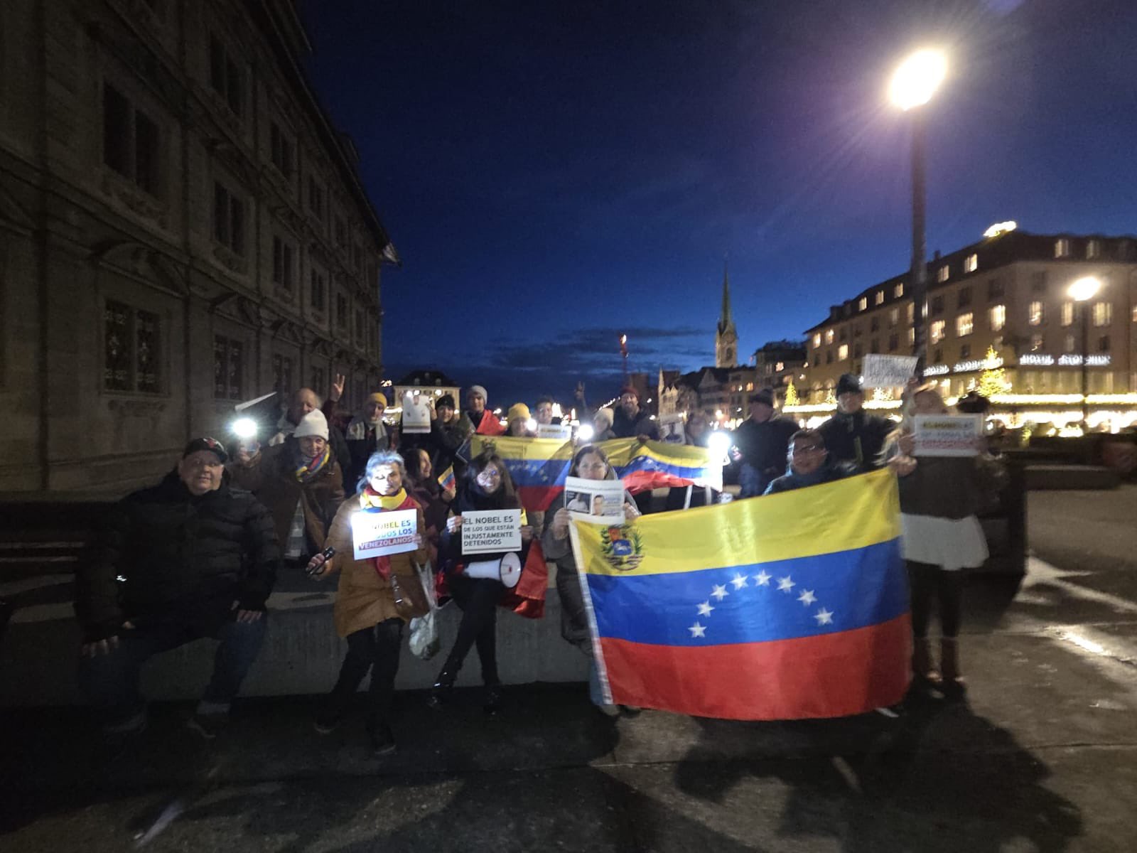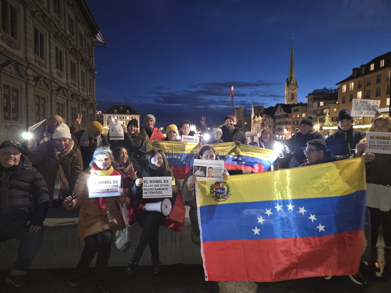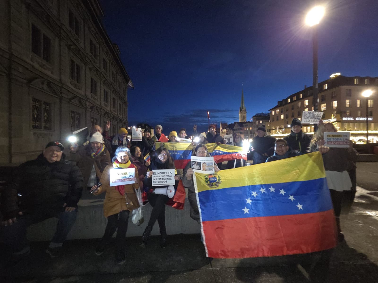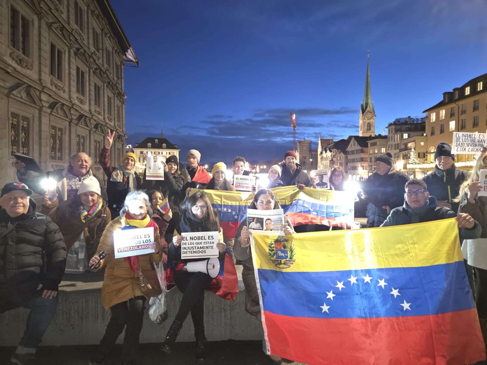 Los venezolanos Zurich, Suiza, se unieron este sábado al llamado por la paz y la libertad en el país, al celebrar el Premio Nobel de la Paz 2025, que fue otorgado a la líder opositora María Corina Machado.