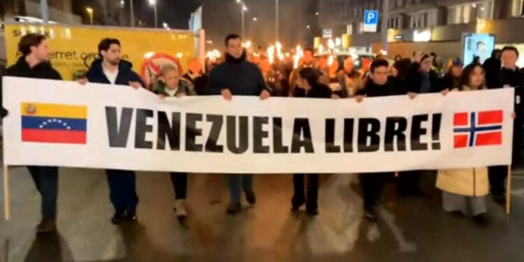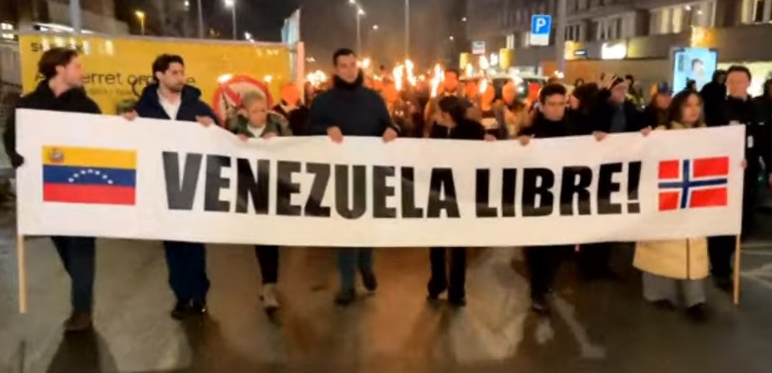 La tradicional Marcha de las Antorchas, recorre este miércoles el centro de la ciudad de Oslo, en Noruega, tras la entrega del Premio Nobel de la Paz 2025 a la líder opositora venezolana, María Corina Machado.