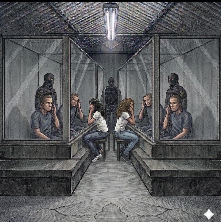 Explicó que, el trayecto hasta el área de visitas dura aproximadamente 20 minutos. Allí, los familiares se sientan frente a un vidrio grueso que los separa de los presos políticos, quienes también son llevados encapuchados y esposados.