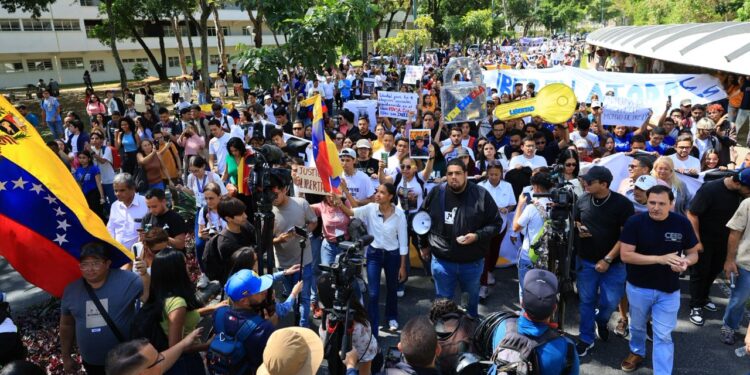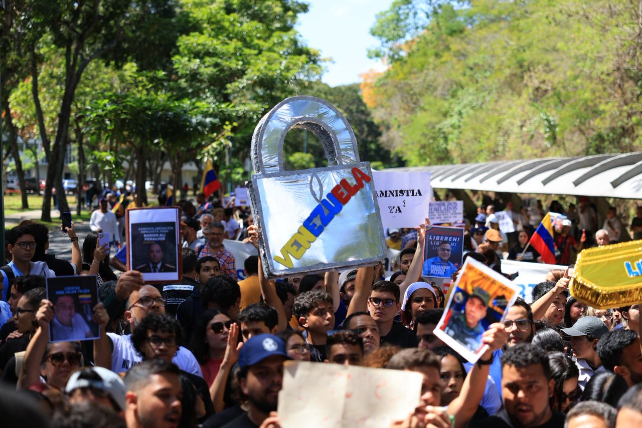 Los estudiantes universitarios lideraron este martes una masiva concentración en la Universidad Central de Venezuela (UCV) por la libertad de todos los presos políticos.