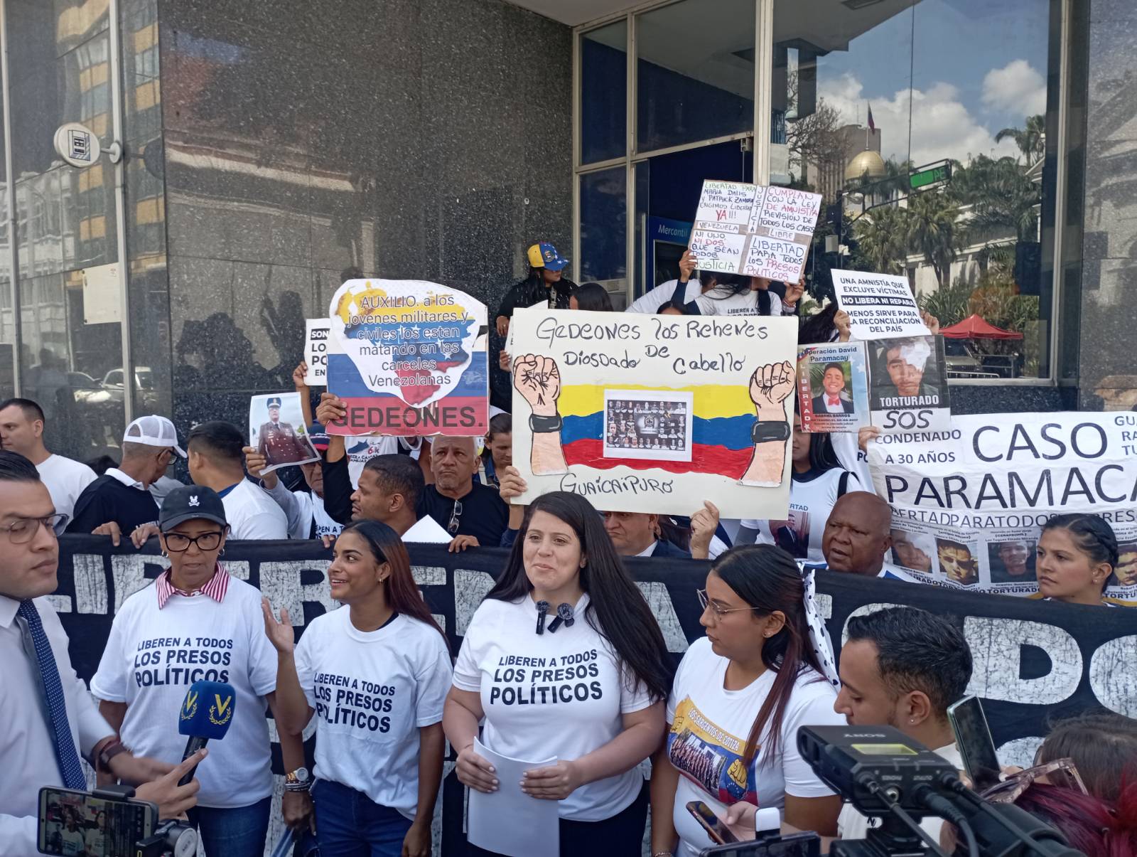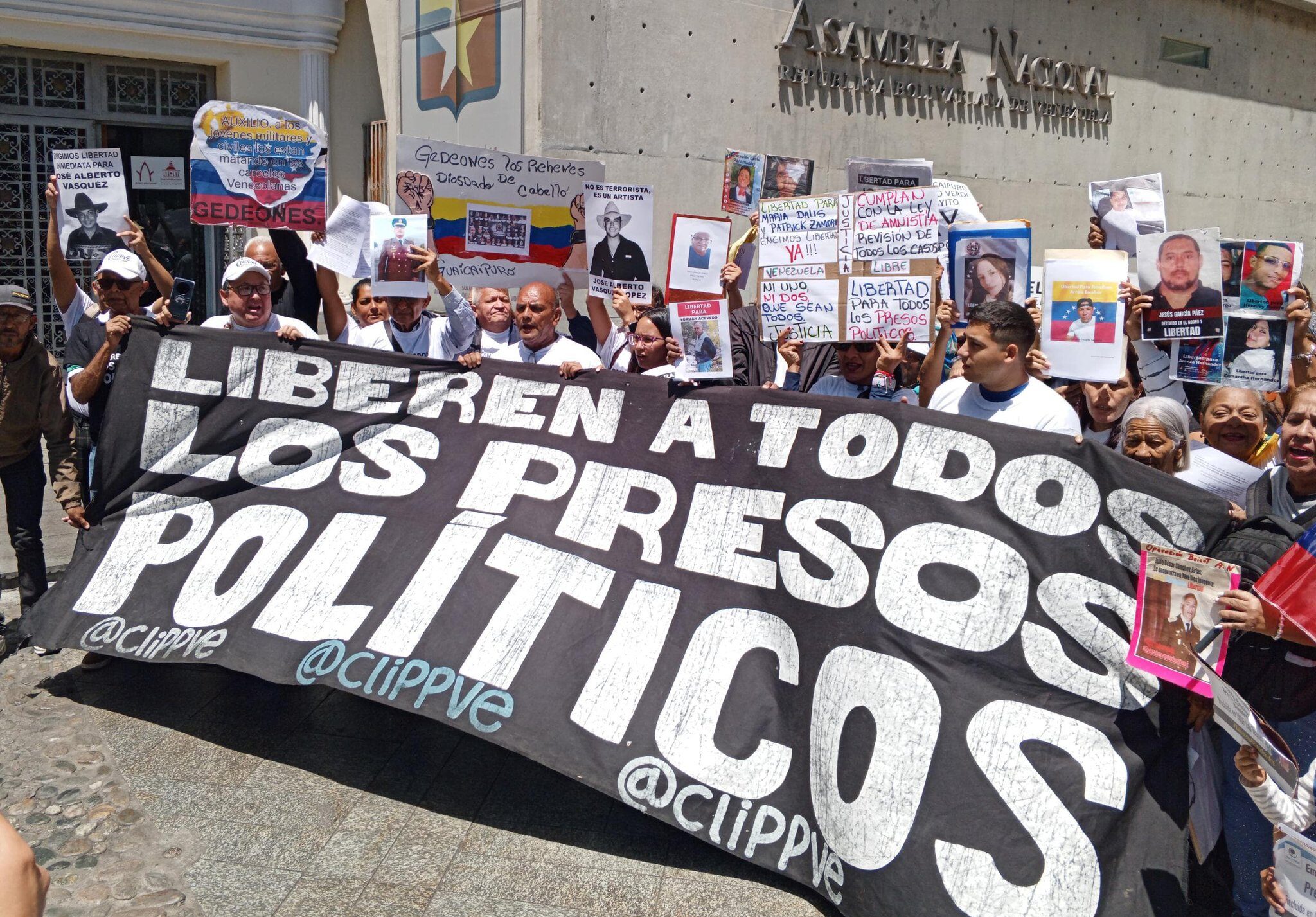 Comité por la Libertad Presos Políticos protesta ante la Asamblea Nacional en Caracas exigiendo revisión de casos excluidos de la Amnistía.