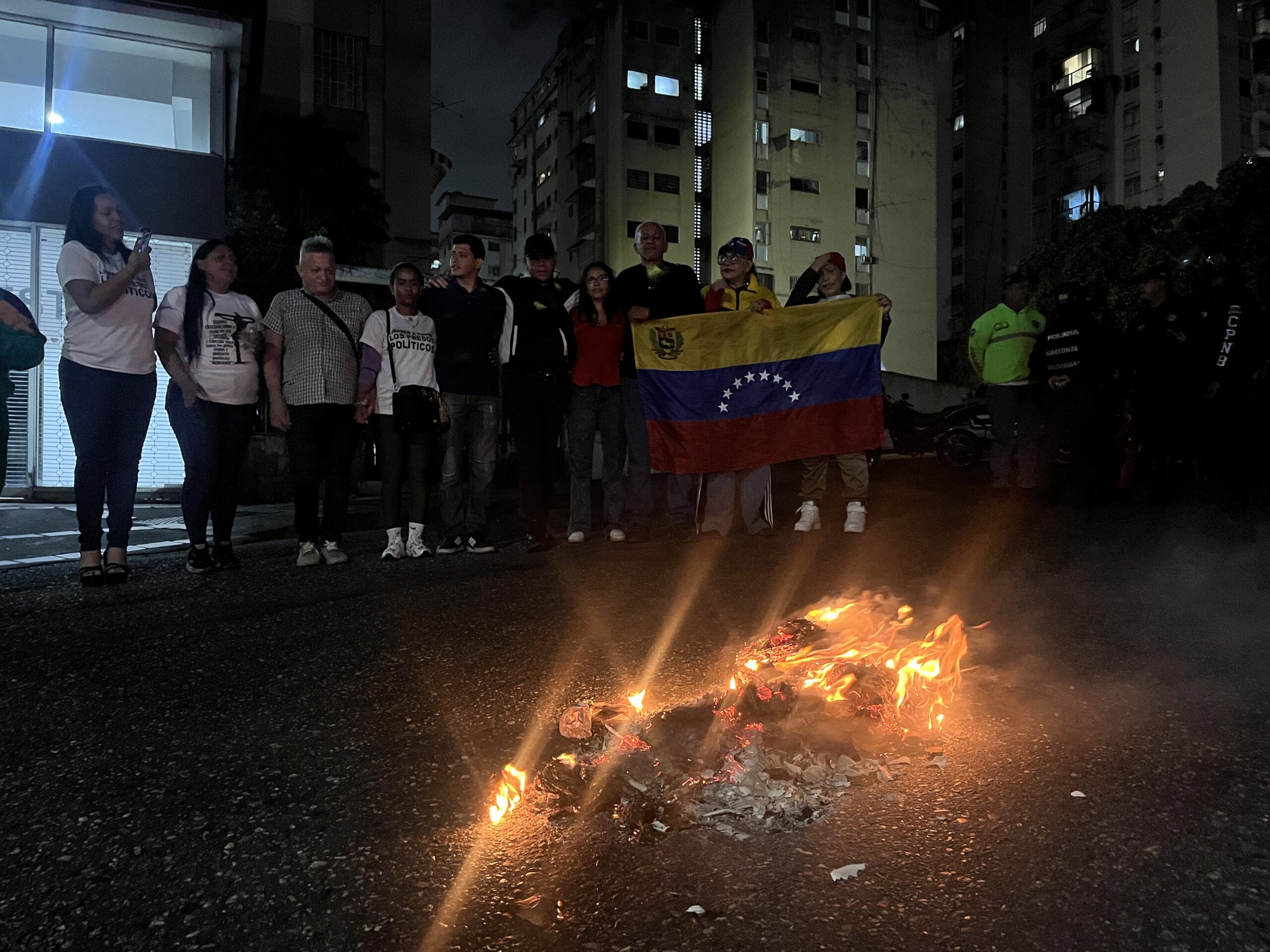 El grupo, que lleva más de dos meses concentrado en las inmediaciones del centro de torturas del Servicio Bolivariano de Inteligencia Nacional (Sebin), encendió fuego a un muñeco elaborado con hojas y telas, evocando la tradicional quema de Judas que cada año se realiza en distintas comunidades del país. Esta vez, el personaje representado fue la injusticia, a la que los familiares describieron como “una traición a la verdad, la justicia y la dignidad”.