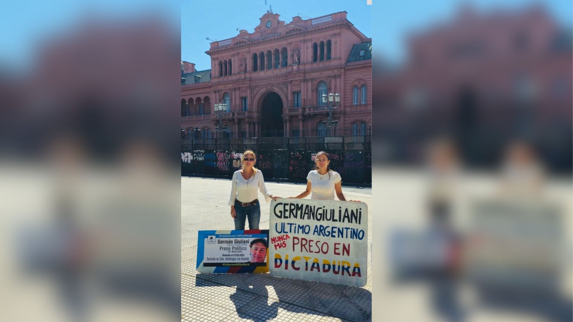 Además, Virginia Rivero, esposa del abogado argentino Germán Giuliani, envió un mensaje al Estado venezolano desde Plaza de Mayo, al cumplirse 306 días del secuestro de su esposo por el régimen chavista.