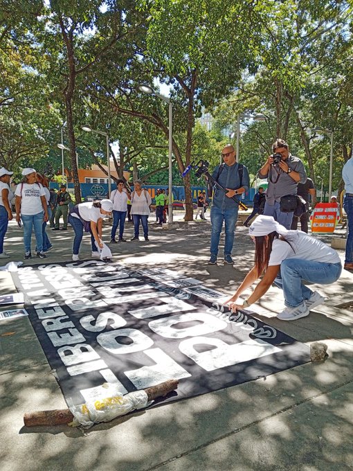 Activistas de derechos humanos y familiares realizaron este martes 18 de noviembre la primera edición de la «Presencia de la Esperanza», la cual se llevó a cabo frente a la sede del Ministerio Publicó en Parque Carabobo, Caracas exigimos la libertad de los presos políticos y el cese de la represión.