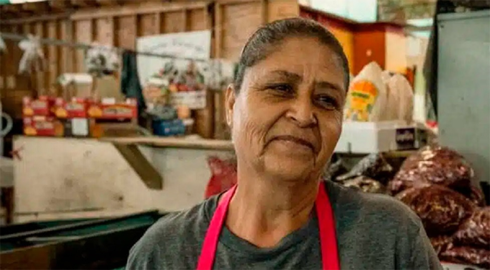Las imágenes son un panorama de Latinoamérica incrustado en un mercado en las afueras de Miami, como fotografías de mujeres que calientan tortillas de maíz en un comal o de una vecina frente a una figura de la Virgen de Guadalupe y debajo de una piñata.