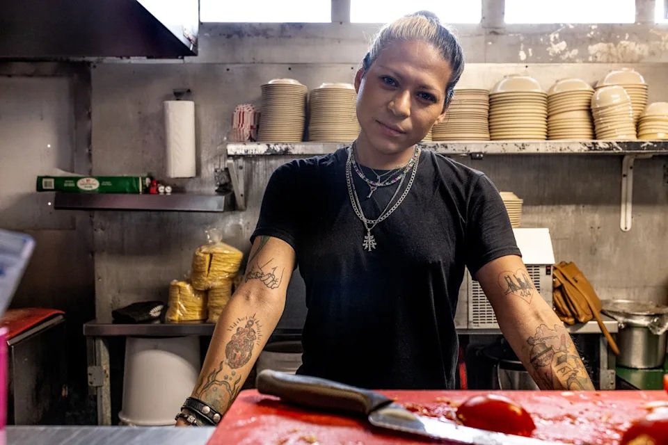 También hay puestos de ropa usada que parecen extraídos de mercados ambulantes latinoamericanos, juguetes de lucha libre y un restaurante mexicano en el que venden menudo, un caldo de pancita de res.